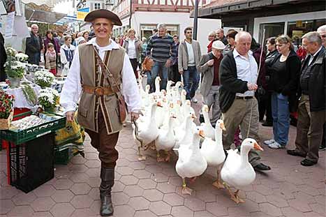 Gans im Glück – der verkaufsoffene Sonntag mit buntem Rahmenprogramm lockt jährlich Tausende von Besuchern in die Stadt.